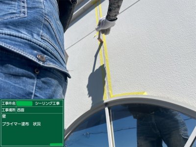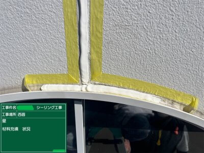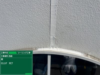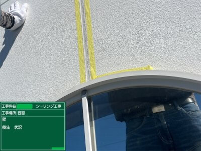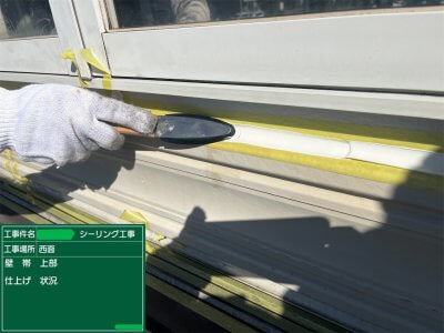 屋上のシーリング工事に引続き、玄関・壁・板金のシーリング工事を行いました。