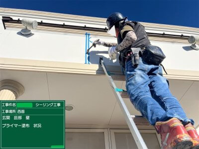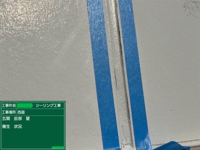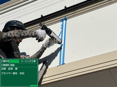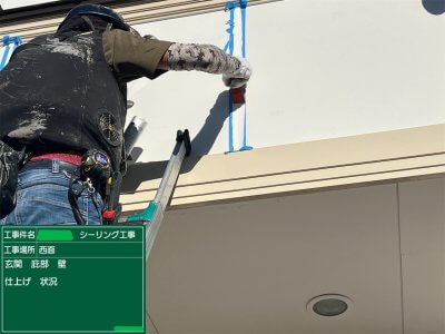 玄関の笠木、壁部分のシーリング工事を行いました。