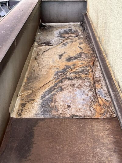 ジョイント部分の劣化・破損、防水シートの劣化・破損が見られました。