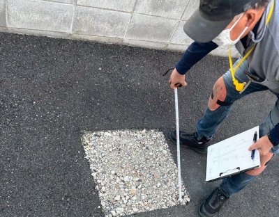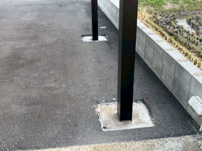 カーポートの根元部分をアスファルトで補修する必要があります。