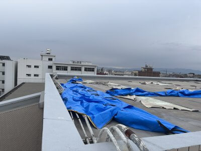 従来の防水層は有り雨漏りは発生していないが、塩ビシートが剥がれて