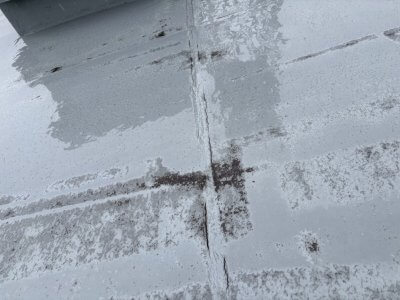 防水部分の劣化・破損・剥離・亀裂が全体的に発生していました。
